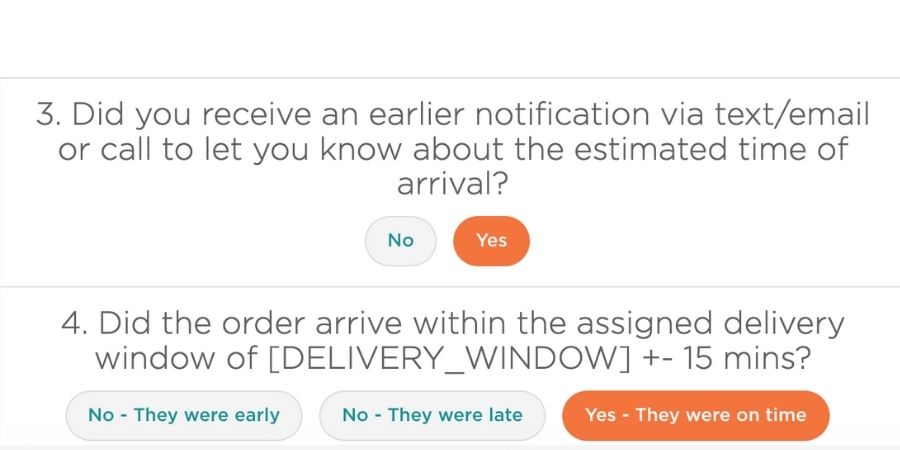 Answer the questions in the form about your delivery: