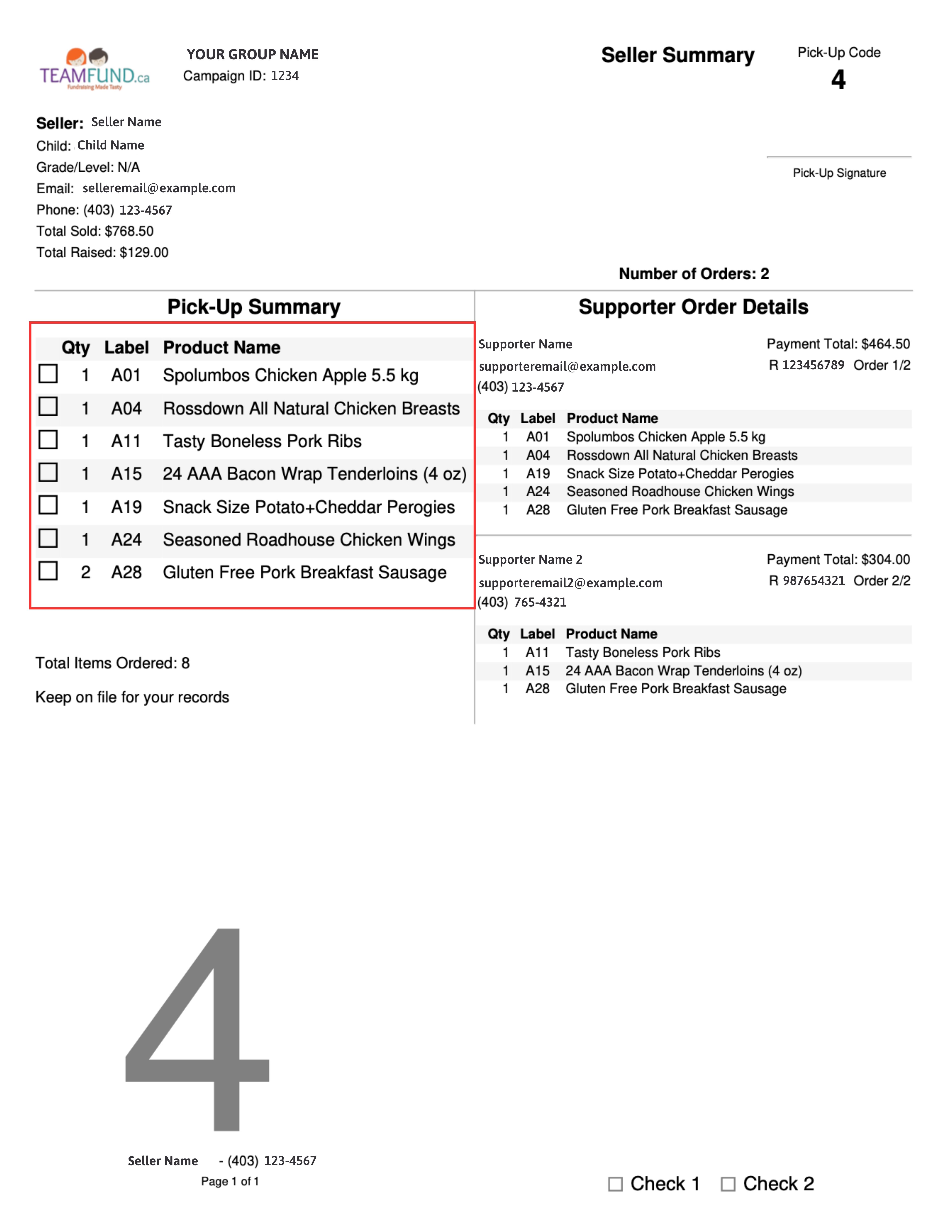 2. Assemble each order as per the Pickup SummaryĀ (left side of the report)