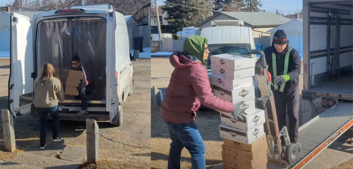 Volunteers help unload, organize, and assemble orders